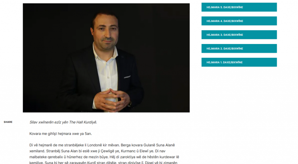 Silav xwînerên ezîz yên The Hall Kurdiyê. Kovara me gihîşt hejmara xwe ya 5an. Di vê hejmarê de me stranbêjeke li Londonê kir mêvan. Berga kovara […]